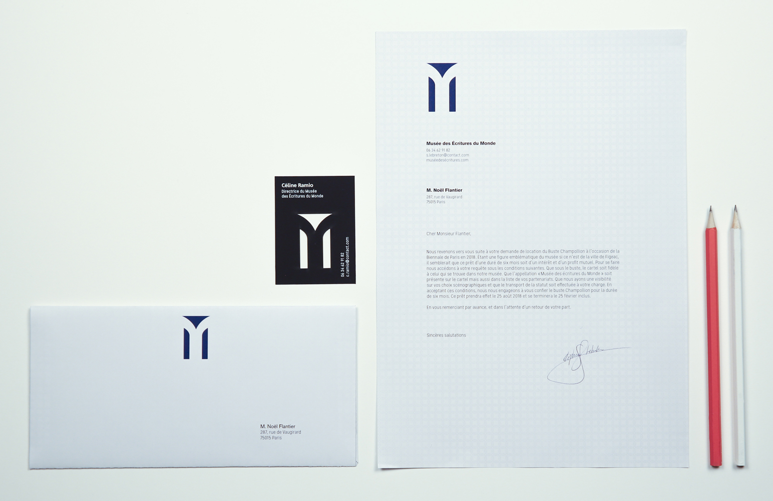 The design of the logo keeps close to the facade of the Maison Champollion by representing one of its arches.